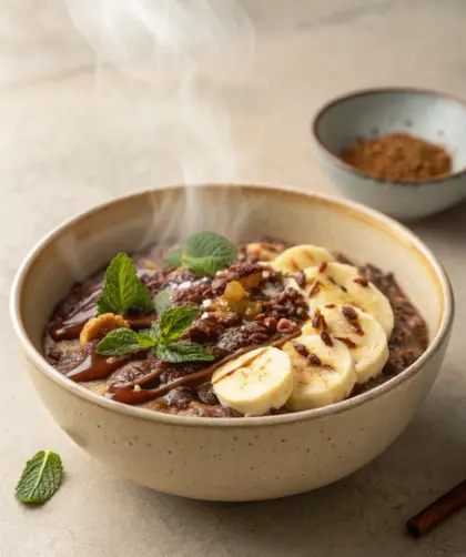 Bowl proteica banana–cacao (leggero) — Introduzione Di quei piccoli momenti in cui la mattina sembra scivolare via tra il profumo della moka e il silenzio …