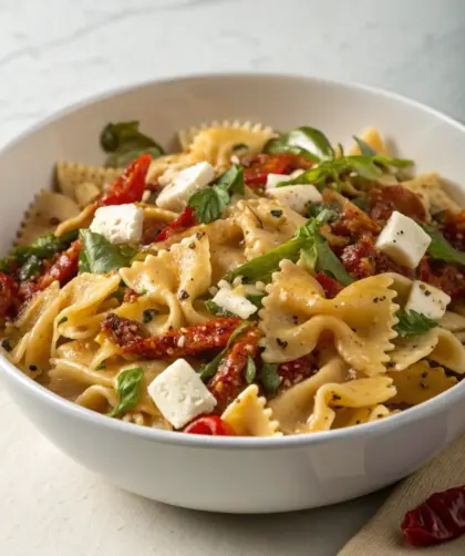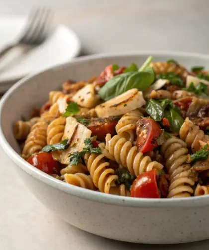 Insalata di pasta integrale mediterranea (perfetto a cena) — Introduzione Ricordo una sera d’estate, quando il caldo rallentava ogni cosa e la luce dorata filtrava …