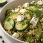 Servi la bowl in ciotole ampie che lascino spazio agli ingredienti: il verde brillante della menta e del cetriolo, il rosso acceso dei pomodorini insieme al beige cremoso dell’hummus creano un quadro naturale e invitante. Un filo d’olio a crudo dona lucentezza, mentre i semi di sesamo aggiungono un tocco rustico e un piacevole croccante. Accompagna il piatto con una pagnotta rustica o del pane pita tostato, per un pranzo semplice ma capace di scaldare l’anima. La leggerezza e la varietà degli elementi fanno di questa bowl un pasto fragrante, adatto a momenti di relax senza fretta.