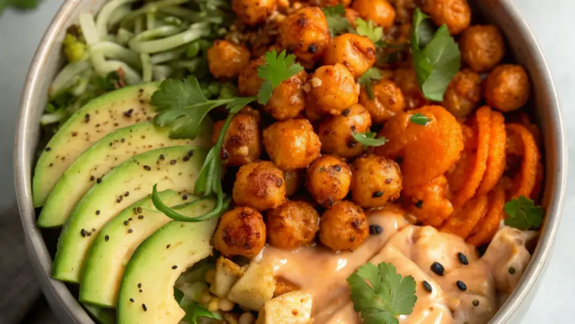 La Buddha bowl si mostra come un quadro di colori caldi e freschi, dove il dorato dei ceci si affianca al verde vellutato dell’avocado e al rosso intenso del cavolo. A tavola, l’atmosfera è rilassata, fatta di scambi informali e piccoli piaceri: un tocco di succo di limone appena spremuto che accende ogni boccone e il leggero crocchiare dei ceci che invita a scandire il ritmo dei sapori. Un piatto che trova il suo posto all’interno di un pranzo leggero ma appagante, accompagnato da un bicchiere di acqua fresca o un tè verde tiepido.