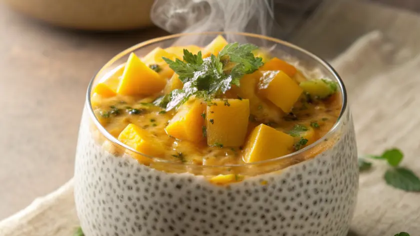 Ricordo ancora la prima volta che preparai questo chia pudding: era un pomeriggio di primavera, con la luce che filtrava dolcemente dalla finestra della cucina. Mentre mescolavo i semi di chia nel latte di cocco, il profumo delicato e leggermente dolce mi riportava ai sapori dell’estate. La consistenza si trasformava lentamente, passando da un liquido sottile a una crema morbida e avvolgente, quasi un piccolo miracolo di pazienza. Nel frattempo, il taglio del mango donava un’esplosione di colore e freschezza, con quei tocchi di arancio che sembravano illuminare il piatto. Non c’è nessun rumore frenetico, solo il silenzio di un dolce fermento nella cucina, mentre il pudding riposa in frigorifero, pronto a regalare una colazione che è quasi una coccola, semplice e sincera.