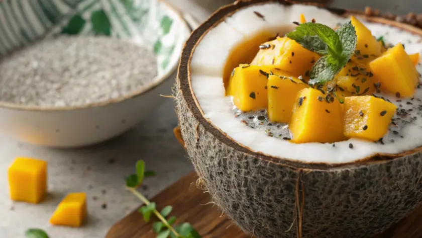 Ricordo ancora la mattina in cui ho mescolato per la prima volta i semi di chia nel latte di cocco, quel liquido cremoso che scivolava tra le dita e lasciava sul palmo un lieve profumo dolce e tropicale. La consistenza gelatinosa che si formava lentamente mi ha incuriosito, una sorta di danza silenziosa tra solidità e morbidezza. Quando ho aggiunto il mango maturo, tagliato a cubetti, è stato come sentire un’estate pura nel piatto: il dolce intenso della frutta si sposava con la freschezza della crema di semi, creando una sensazione naturale e leggera, quasi un piccolo gesto di cura verso me stesso. L’aria nella cucina si riempiva di un sentore fruttato e dolce, senza esagerazioni, e la luce del mattino attraversava il bicchiere, illuminando quella texture così semplice ma capace di sorprendere. È una ricetta che parla di lentezza, di coccole leggere senza complicazioni.