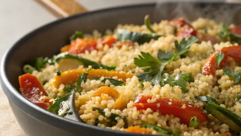 Ricordo perfettamente quella mattina in cui, con poco tempo e molta voglia di qualcosa di genuino, ho deciso di preparare questo couscous perlato alle verdure. Ricordo il suono delle verdure che sfrigolavano dolcemente in padella, il profumo terroso della cipolla leggermente caramellata che si mescolava al dolce aroma del peperone arrostito. In poco tempo, il calore della cucina sembrava avvolgermi, mentre il couscous perlato, con la sua consistenza morbida ma ancora leggermente compatta, assorbiva i sapori di tutta la padella. È un piatto che racconta di momenti semplici, di conforto senza fretta, dove ogni boccone racchiude quel leggero croccante delle verdure appena saltate. Lo preparo spesso quando cerco qualcosa di caldo, nutriente e senza complicazioni, ma con un tocco di freschezza e rusticità autentica.