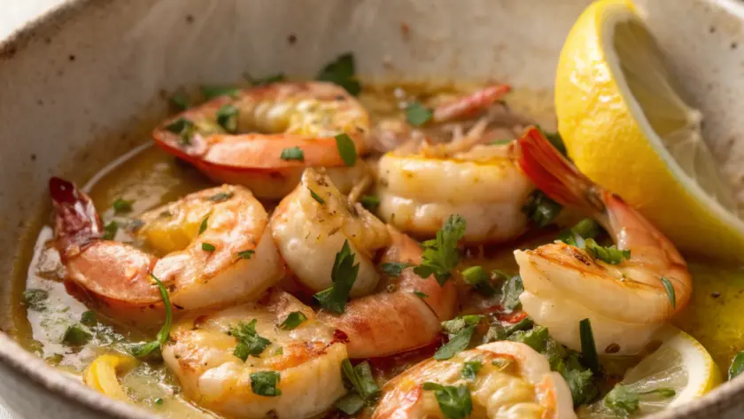 Ricordo ancora il profumo che si diffondeva nella cucina quella sera: il crepitio leggero dei gamberi infilzati nella padella calda, accompagnato dall’aroma pungente dell’aglio appena schiacciato e dalla fresca nota agrumata del limone. Mentre il burro si scioglieva, creando quella base dorata perfetta, sentivo l’aria riempirsi di un richiamo semplice ma sorprendente. La superficie dei gamberi, appena diventata rosa, conservava una lieve croccantezza che contrastava con la morbidezza interna, e quel tocco di scorza di limone grattugiata a fine cottura aggiungeva un profumo sottile, come una carezza. La leggerezza di questo piatto, unita a una semplicità genuina, rendeva ogni boccone armonioso, senza mai essere invadente. Era un momento intimo di piacere quotidiano, fatto di sapori che non urlano, ma si raccontano piano, come una storia che ti scalda in una sera qualsiasi.