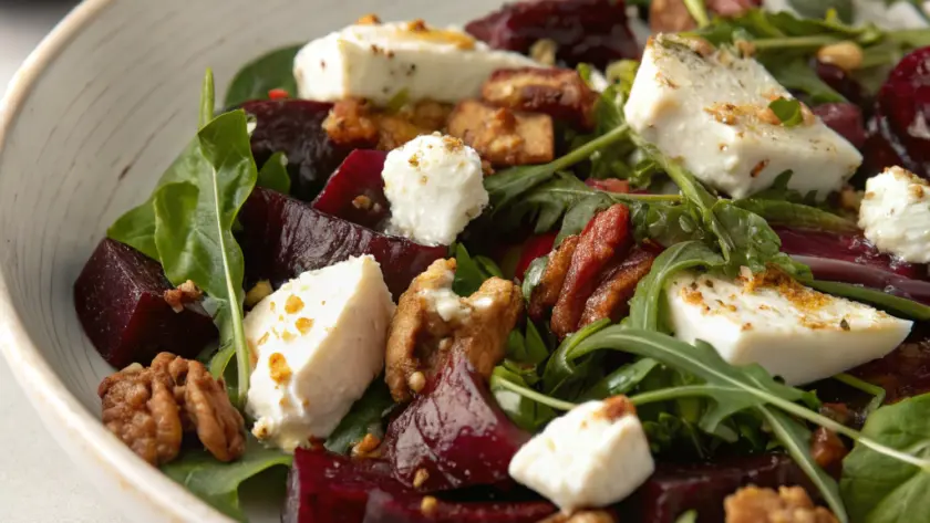 Ricordo ancora il suono lieve di una forchetta che incide una barbabietola appena arrostita, quella consistenza morbida ma ancora leggermente croccante, che si scioglie lentamente sotto il palato. L’aroma terroso che si sprigiona mentre la barbabietola cuoce nel forno, avvolta nella sua buccia, riempie la cucina di una calma quasi meditativa. In questa insalata c’è qualcosa di semplice ma profondamente rassicurante: la dolcezza naturale della barbabietola, che si intreccia con la cremosità fresca del caprino, e quel tocco croccante e tosto delle noci, perfette compagne di viaggi di sapore. Non serve una spesa eccessiva per mettere insieme un piatto così caratteristico, perché la cucina buona a volte vive di pochi ingredienti selezionati con cura e ritmo naturale. Qui, ogni boccone racconta una storia di contrasti morbidi e ruvidi, di colori che scaldano la vista prima ancora che il gusto prenda il sopravvento.