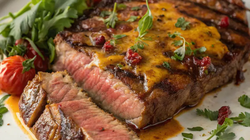 Servi la bistecca su un piatto caldo, preferibilmente di ceramica chiara che faccia risaltare la crosticina ambrata. Accanto, un contorno semplice come un’insalata fresca o delle patate arrosto dorate crea un equilibrio piacente e rilassato. Se c’è tempo, qualche goccia di succo di limone o un filo d’olio a crudo completano il piatto senza togliere protagonismo alla carne. L’ideale è gustarla in un’atmosfera informale, accompagnandola con un vino rosso morbido e una luce calda, lasciandosi andare alle chiacchiere.