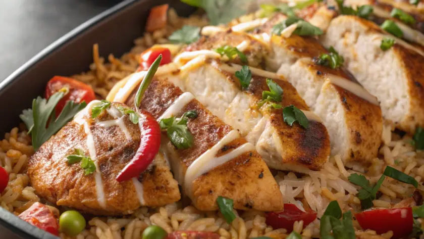 Porta in tavola questo riso con pollo ancora caldo, magari in una ciotola rustica che esalti il leggero contrasto di colori tra il riso soffice, il pollo dorato e i piselli verdi. Un filo d’olio crudo sopra può arricchire la superficie e creare un gioco di luci. Perfetto per serate informali, lo accompagno spesso con una semplice insalata fresca o qualche pomodorino tagliato a metà per un po’ di acidità che bilancia il piatto. Il suo calore avvolge bene l’atmosfera senza essere mai eccessivo.