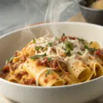 Ricordo un pomeriggio di fine inverno, quando avevo voglia di qualcosa che scaldasse senza troppi pensieri. Quel tipo di piatto che profuma di casa, con il leggero borbottio dell’acqua che bolle e il canto sottile dell’olio che sfrigola in padella. La ricetta è nata così, quasi per caso, con pochi ingredienti messi insieme e la certezza che alla fine sarebbe venuto fuori qualcosa di semplice ma confortante. Il calore che si sprigiona mentre mescoli la pasta, avvolta da una salsa morbida e calda, ha la capacità di mettere subito il buon umore, come un abbraccio silenzioso che non chiede altro che un po’ di pazienza e attenzione. L’intensità del formaggio fuso, il tocco delicato della noce moscata, sono dettagli che mi riportano a quella finestra aperta sulla cucina, dove fuori l’aria frizzante si intrecciava con il profumo del piatto: un piccolo momento perfetto di normalità.