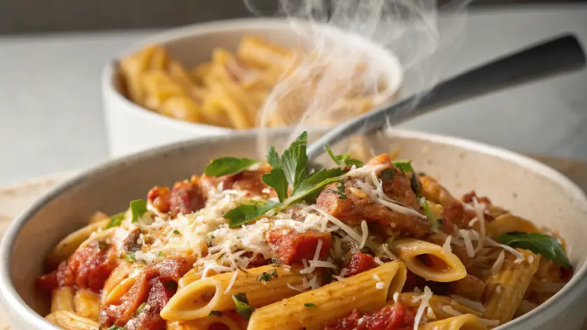 Ricordo ancora la sensazione di quel pomeriggio in cucina: il pane appena sfornato sul tavolo, un filo d’olio che si riscalda nella padella e quel profumo semplice, ma avvolgente, di aglio appena soffritto che riempiva l’aria. Era una di quelle giornate in cui si vuole soltanto qualcosa di buono, senza troppe pretese, ma che ti scaldi davvero. La pasta, scolta al punto giusto, come piace a me — un po’ resistente sotto i denti — viene poi avvolta da un condimento che nasce dagli ingredienti più modesti. Il rumore del sugo che sobbolle piano, il calore che si diffonde lentamente mentre mescolo tutto con cura ed equilibrio, ti fa capire che a volte basta poco per sentirsi a casa. È una ricetta nata dalla voglia di semplicità, ma con dentro quel gesto familiare che rende tutto più vero.