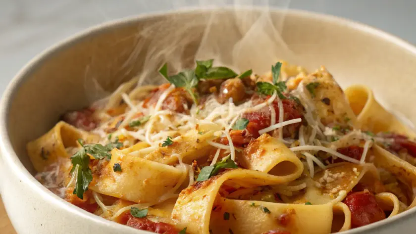 Ricordo ancora le sere in cui, dopo una lunga giornata, mi rifugiavo in cucina sperando di ritrovare un po’ di calore e semplicità. Questa pasta nasce proprio da quei momenti: l’acqua che bolle lentamente, il leggero sobbollire del sugo in padella, quel profumo appena tostato di aglio e pomodoro che invade la casa. Quando mescolo la pasta con il condimento, la consistenza perfetta al dente si mescola a una cremosità rustica che non richiede nulla di complicato – solo ingredienti onesti e tanta calma. Mi piace il piccolo rumore che fa la forchetta mentre avvolge i fili di pasta, e come quel piatto sa mettere subito a proprio agio, proprio come un abbraccio diventato familiare nel tempo. È uno di quei piatti che ti lascia in tasca il sapore semplice delle cose fatte bene, senza fretta.