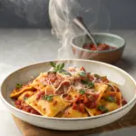 Ricordo ancora il suono della pasta che sobbolle dolcemente nella pentola, un leggero borbottio che fa da sottofondo mentre preparo questa ricetta. L’odore che si sprigiona è quasi impercettibile all’inizio, ma basta un minuto in più nel soffritto di aglio e pomodoro per riempire tutta la cucina di un caldo profumo familiare, capace di confortare anche nelle giornate più stanche. La consistenza della pasta, al dente ma morbida al punto giusto, si sposa con la cremosità del condimento, semplice ma pieno di gusto. È un piatto che non ha bisogno di grandi complicazioni, eppure ogni volta mi regala quella sensazione di “casa”, dove il tempo si ferma per un momento e tutto si fa più leggero, intorno a un tavolo e a un piatto di pasta che non tradisce mai.