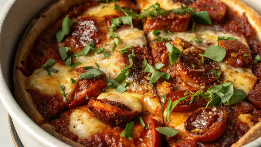- Appena sfornato, spargi qualche foglia di basilico fresco e lascia riposare un paio di minuti prima di servire: è il momento in cui i profumi si completano e tutto si sente più familiare.