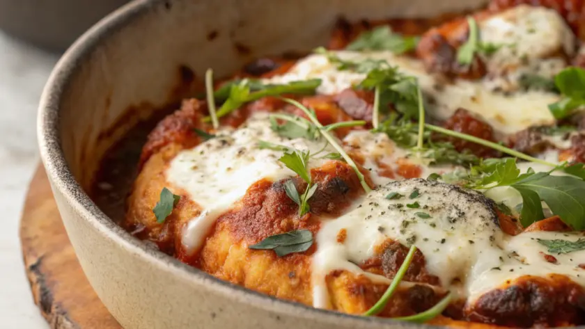 Servi il pollo su un piatto semplice, magari accanto a una fresca insalata di pomodori e basilico o a delle verdure grigliate. Il contrasto tra il dorato intenso della crosticina e il verde vibrante degli ortaggi crea un equilibrio di colori molto piacevole. Un filo d’olio a crudo o qualche goccia di limone aggiunto al momento completeranno il piatto senza appesantirlo. Se vuoi, una fetta di pane casereccio fatto in casa aiuterà a raccogliere ogni residuo di sapore.