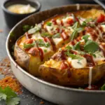 Questo piatto si gusta al meglio su un piatto bianco che ne evidenzi il rosso brillante dei pomodorini e il verde vivo del basilico. Accompagna con un bicchiere di vino bianco fresco o, per equilibrio, una semplice acqua minerale leggermente frizzante. L’atmosfera ideale è quella di una cena informale, magari con una tovaglia chiara e luci soffuse, lasciando che il calore del piatto rilassi davvero chi si siede per mangiarlo.