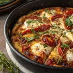 Questo piatto si gode al meglio in un’atmosfera informale, magari con una tovaglia chiara e un bicchiere di vino bianco fresco. Il rosso dei pomodori e il verde del basilico creano un contrasto semplice, ma pieno di vita, che invita a sedersi a tavola senza fretta. Accompagnalo con un’insalata leggera o un contorno di verdure grigliate per mantenere la leggerezza, e lascia che ogni forchettata racconti la sua storia fatta di calore e semplicità.