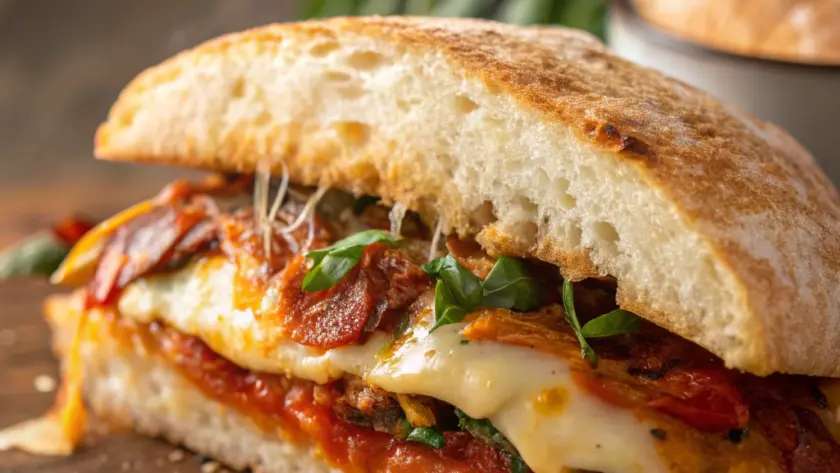 Il panino caldo si presenta ben dorato, con il formaggio che si intravede appena filante tra le fette di pane croccante. Servilo tagliato a metà, così che il ripieno si mostri in modo invitante. Un piccolo piatto di insalata fresca o qualche pomodorino datterino esalteranno il contrasto tra caldo e fresco. L’atmosfera ideale? Un tavolo semplice, una tovaglia a quadretti e la luce calda di un pomeriggio in famiglia, senza fretta, con il suono discreto della padella che ancora borbotta sul fuoco.