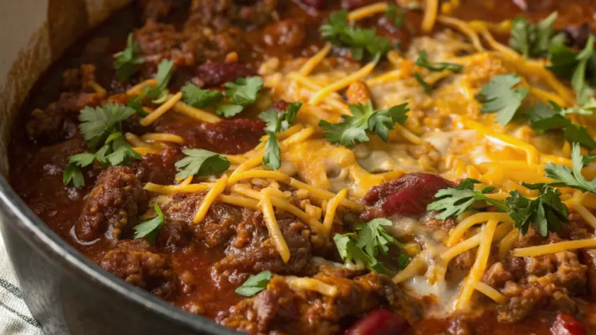 Servi il chili ben caldo in ciotole ampie, magari accompagnato da una fetta di pane rustico o tortillas di mais calde, che assorbono bene il sugo. Il rosso intenso del piatto crea un bel contrasto con il verde del prezzemolo fresco e il bianco del formaggio grattugiato, se vuoi aggiungerlo sopra. È un piatto che invita a stare insieme, a mani sporche e sorrisi rilassati intorno al tavolo, e la sua semplicità si sente in ogni cucchiaio. Ti accorgerai che anche senza troppi fronzoli, un piatto così ti scalda davvero.