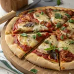 La quiche si fa apprezzare calda o tiepida, servita su un piatto semplice che ne faccia risaltare il colore dorato e la cremosità all’interno. Accompagnala con un’insalata di rucola fresca, leggermente condita con limone e olio, per bilanciare la morbidezza. Il contrasto tra il calore del forno e la freschezza del verde crea sempre un bel gioco di tonalità e consistenze, perfetto per un pranzo informale o una cena leggera tra amici.