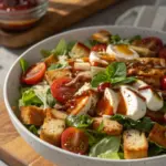 Servi l’insalata Caesar in piatti ampi, dove le foglie verdi si mescolano armoniosamente con i crostini dorati e le scaglie di parmigiano. Il contrasto cromatico tra il verde brillante e il beige dei crostini rende il piatto invitante alla vista, mentre il leggero lucore della salsa accende l’appetito. Accompagna con un bicchiere di vino bianco fresco o, per un pasto più leggero, con acqua frizzante e una fetta di limone. L’atmosfera ideale è quella di un pranzo informale con amici o una cena leggera, senza pretese ma con piacere autentico.
