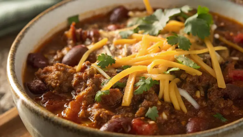 Porta in tavola questo chili ben caldo, magari accompagnandolo con del riso basmati bianco o con tortillas croccanti. Il contrasto tra il rosso intenso del sugo e il verde di qualche foglia di coriandolo fresco o prezzemolo dona un’aria semplice ma viva al piatto. Un’insalata di stagione con pomodorini e cipolla rossa può completare con leggerezza la proposta. La sua natura informale lo rende ideale per serate rilassate, dove il calore del piatto è un invito a stare insieme senza fretta.