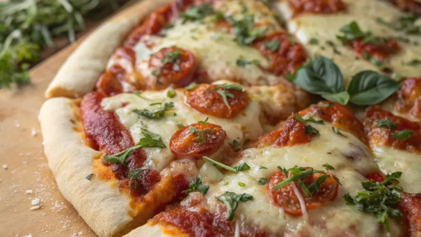 La pizza così preparata è perfetta servita calda, appena uscita dal forno, con il bordo ancora morbido ma con qualche crosticina dorata. Puoi accompagnarla con un’insalata fresca di pomodori e rucola, per un contrasto semplice ma efficace. Il colore rosso vivo della salsa, il bianco filante della mozzarella e il verde dell’origano creano un quadro rustico e invitante, ideale per serate in famiglia o con amici.