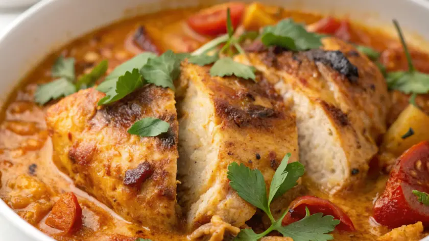 Ricordo bene la prima volta che ho preparato questo pollo al curry: il suono del petto di pollo che sfrigolava nella padella, mescolandosi all’odore caldo e speziato del curry, ha subito dato un senso di comfort alla cucina. Il profumo inconfondibile di curcuma e pepe nero mi ha accompagnato mentre versavo il latte di cocco, che ha avvolto tutto in una cremosità leggera. La consistenza del pollo, tenero ma ancora succoso, lo rende speciale senza bisogno di lunghe marinature. È un piatto che si risolve in poco tempo, perfetto per quei giorni in cui serve qualcosa di saporito ma senza troppe complicazioni. Quel calore, il colore dorato del curry e il leggero sfrigolio durante la cottura creano un’atmosfera familiare, quasi terapeutica, che mi piace ritrovare ogni volta che torno a questa ricetta.