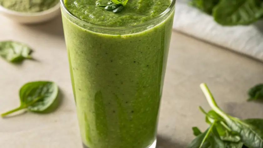 Versa lo smoothie in bicchieri trasparenti per lasciare che il verde brillante faccia la sua parte. Puoi aggiungere una fettina sottile di mela sul bordo del bicchiere o qualche fogliolina di spinaci fresca per un tocco naturale. Questo drink si presta bene come inizio leggero di giornata o come pausa rinfrescante, accompagnato magari da qualche biscotto integrale o una manciata di noci. La sua semplicità lo rende perfetto anche per un momento di relax, senza fretta e con un po’ di calma.
