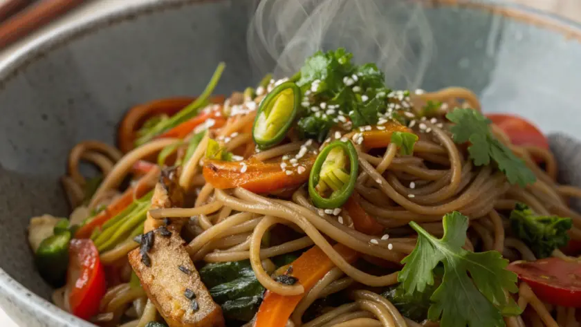 Ricordo una sera d’inverno, quando il freddo ti entra dentro l’osso, e in cucina si comincia a sentire quel profumo umido di zenzero e salsa di soia che preludia a qualcosa di caldo e confortante. La padella sfrigolava appena, le verdure saltavano, lasciando andare tonalità croccanti e colori accesi, mentre l’acqua bolliva per le soba, quei sottili noodles di grano saraceno dal sapore leggermente terroso. Il rumore sommesso della cottura, il lento mescolarsi dei sapori, erano un invito a prendersi un momento, a godersi il calore che si impossessava della cucina e del piatto stesso. La consistenza della pasta, morbida ma tenace, abbracciata da un mix di verdure fresche e proteine delicate, sembrava perfetta non solo per scaldare il corpo ma anche per riempire con equilibrio e calma. È un piatto che racconta la lentezza di un gesto quotidiano fatto con cura.