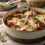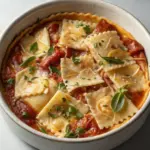 Metti una porzione nel piatto piuttosto bassa così da lasciare spazio all’aria, decorala con un rametto di prezzemolo o un filo d’olio a crudo. L’abbinamento ideale è un calice di vino bianco fresco, come un Verdicchio giovane, che riesce a bilanciare la cremosità senza appesantire. Una tovaglia di lino chiaro e una luce calda rendono l’atmosfera perfetta per una cena semplice e autentica, in cui godersi ogni cucchiaio senza fretta.