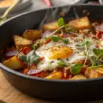 Mi ricordo bene le sere in cui torno a casa stanco e con la voglia di qualcosa di semplice, ma capace di scaldare l’anima senza svuotare il portafoglio. Questa ricetta nasce proprio da quei momenti, quando apro il frigo con poche cose ma tanta voglia di mettermi alla prova. Mentre la pentola si scalda sul fornello, si sente il leggero crepitio dell’olio e il profumo della cipolla che piano si ammorbidisce, quasi a voler accogliere chi è arrivato. C’è qualcosa di rassicurante nel preparare un piatto che coccola senza pretese, con consistenze morbide e croccanti, che ti fanno sentire “a casa” anche senza tante cerimonie. Il calore che si sprigiona dalla cucina mentre tutto si amalgama, il suono di un cucchiaio che mescola lentamente, sono dettagli che restano impressi con quel sorriso tranquillo, quello che solo una cena semplice ma sincera sa regalare.