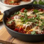 Questo piatto va servito caldo, in un piatto dai bordi bassi che lasci spazio alle tonalità calde dei pomodorini e al bianco cremoso della ricotta. Il verde brillante del basilico dona un effetto fresco e invitante. Si abbina bene a un calice di vino bianco leggero o a una semplice acqua frizzante. Sedersi con una tovaglia a righe e una luce soffusa del tavolo rende la cena ancora più intima e rilassante.