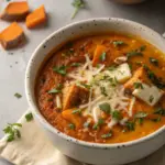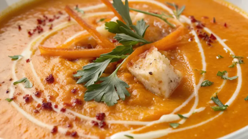 Servi la zuppa in ciotole ampie e basse, dove il colore arancione delle carote illumina subito la tavola. Qualche fogliolina di prezzemolo fresco aggiunge un tocco vivace e un profumo erbaceo che si sposa bene con gli aromi della zuppa. Accompagna con un pane casereccio leggermente tostato o una focaccia semplice, per un contrasto croccante. L’atmosfera calda e raccolta di questo piatto rende l’ideale un momento di tranquillità, magari davanti a una luce soffusa e una tazza di tè leggero accanto.