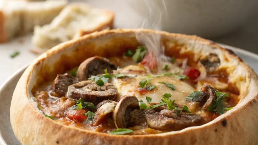 La zuppa scalda la tavola con i toni caldi e terrosi dei funghi e delle verdure, invitando a lasciarsi andare a un momento di conforto. Versala in ciotole rustiche, dal bordo spesso, che trattengono bene il calore. Puoi decorarla con una fogliolina di timo fresco per un tocco di verde intenso, oppure con un filo di olio extravergine d’oliva a crudo che aggiunge lucentezza. Accompagna con crostini fragranti o un pane casereccio leggermente tostato, così da riprendere in mano ogni cucchiaiata fino all’ultima goccia.