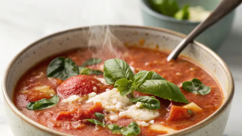 Ricordo una sera d’estate, quando il sole volgeva lentamente al tramonto, e la cucina si riempiva di quel profumo quasi dolce del basilico appena raccolto. Preparare questa zuppa è un po’ come ripercorrere quei momenti: il leggero scricchiolio delle foglie mentre le strofini tra le dita, il soffritto che lentamente si colora di oro in pentola, e quel suono delicato della polpa di pomodoro che sobbolle piano, quasi a cantare una melodia familiare. Non è solo un piatto, ma un invito a sentire la mano che trasforma ingredienti semplici in qualcosa di confortante, caldo e avvolgente. La cremosità si tesse tra i sorsi, mentre il basilico fresco intensa la freschezza senza togliere mai spazio alla naturale dolcezza del pomodoro. Basta un mestolo per sentire che questa zuppa è un piccolo abbraccio nel piatto.